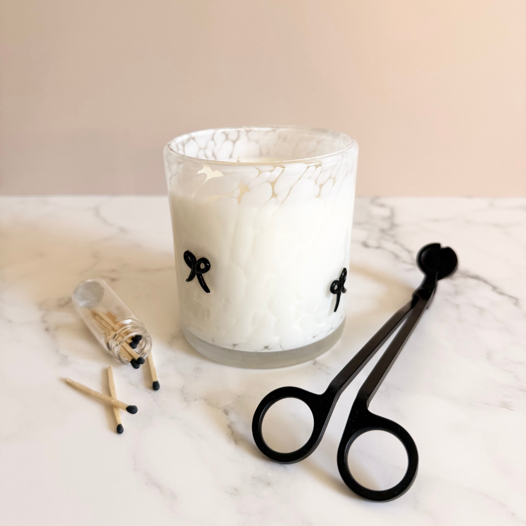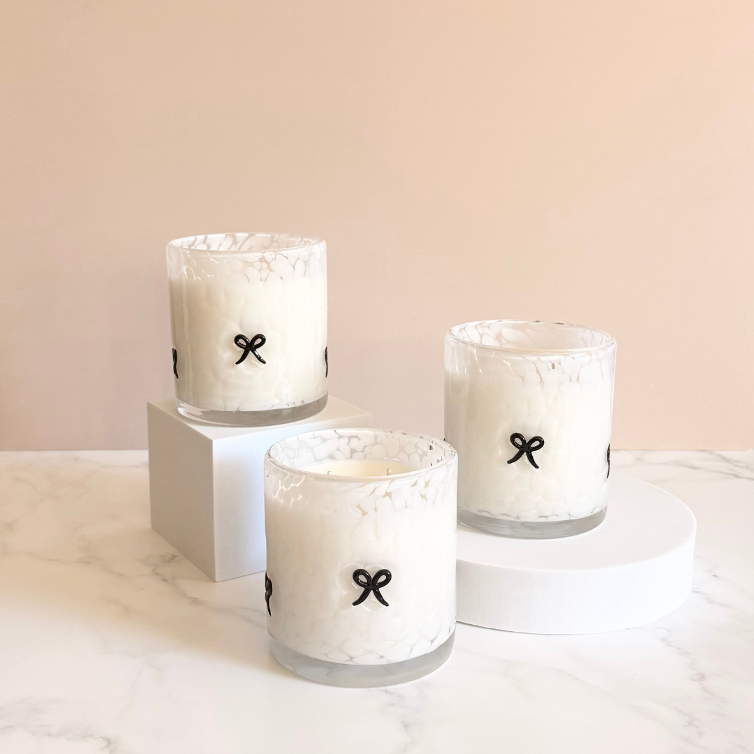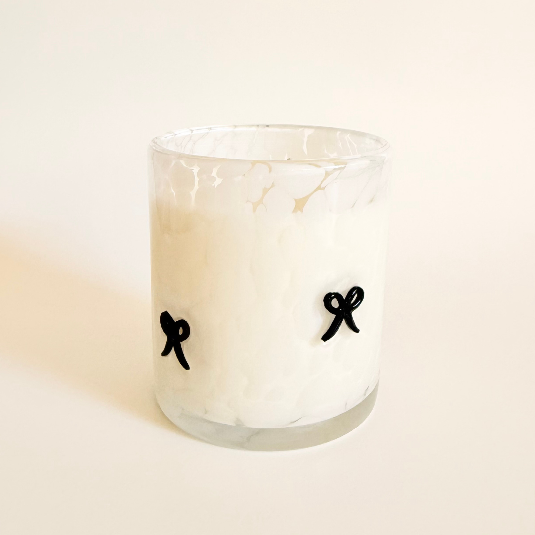 Our Limited Edition Icon Glass pairs delicate black bows with a field of speckled white, creating a vessel that feels equal parts playful and refined. Each piece is hand-blown by artisans using traditional glassmaking techniques, resulting in a luminous, one-of-a-kind finish. Because every vessel is handmade, no two are ever exactly alike.